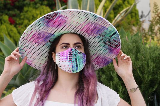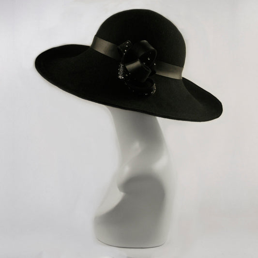 Elegant White Velvet Big Brim with Tetris Underbrim