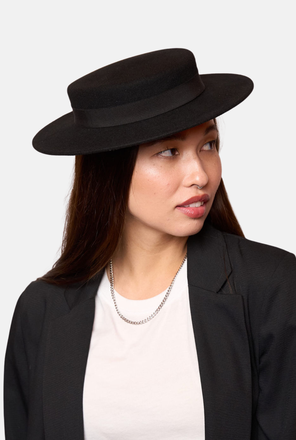 The Boater is a timeless classic featuring a shortened crown and compact brim that delivers refined sophistication without excess. This one-size-fits-all design combines traditional millinery craftsmanship with modern proportions, making it an accessible choice for those seeking authentic boater styling. The reduced silhouette works beautifully for various face shapes and occasions, from casual outings to more formal events. A versatile essential that honors boater heritage while embracing contemporary sensibility. Finished with a matching grosgrain hat band and tailored bow.