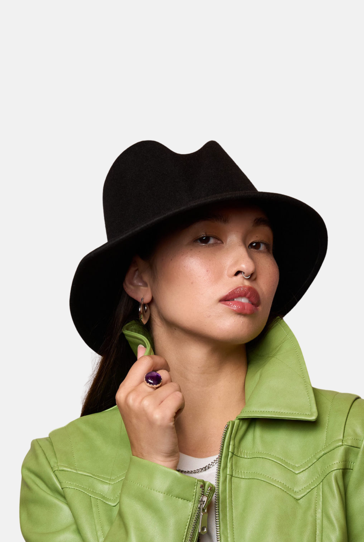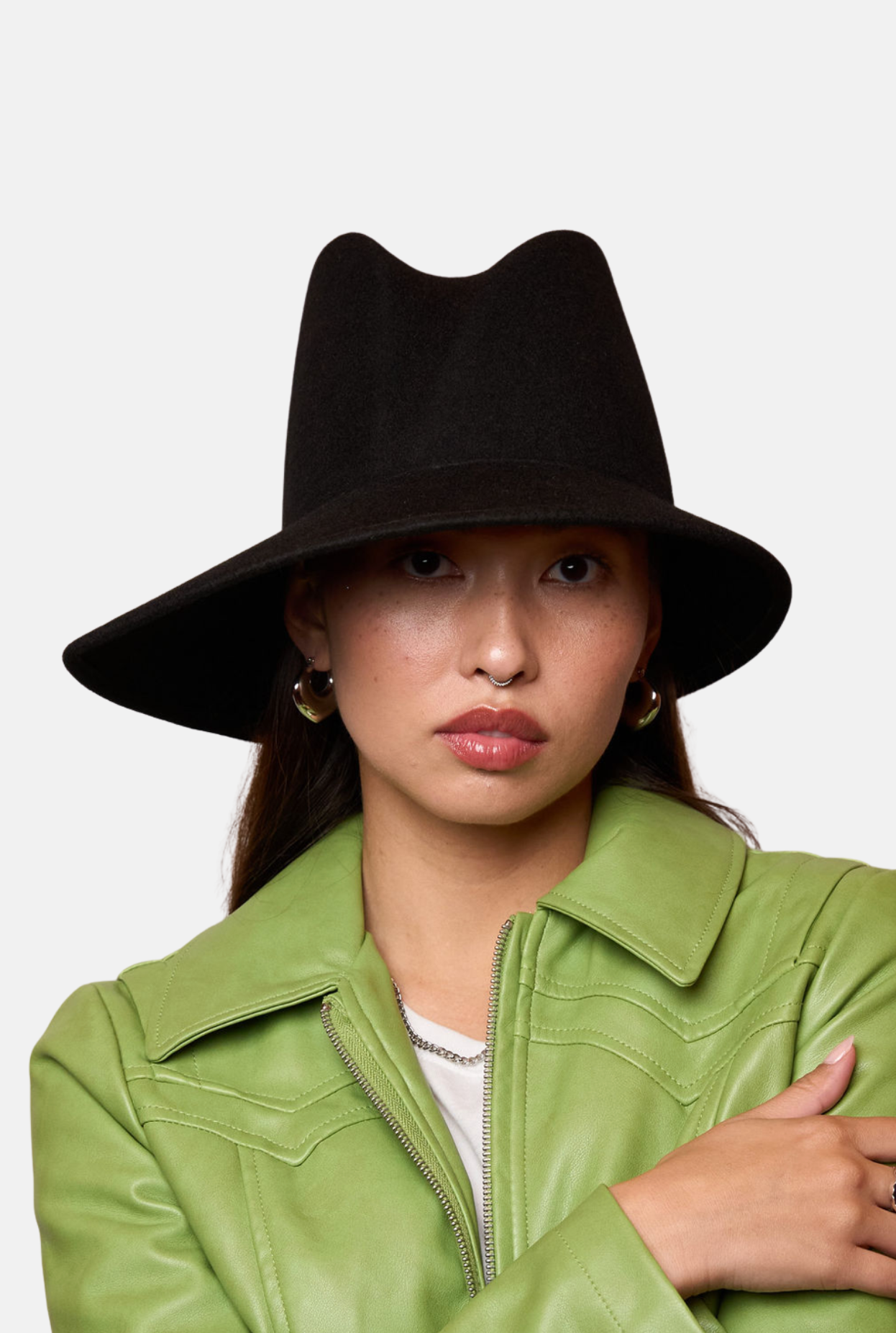 This hat was crafted on a Polish hat block with a sharp dent in the tall crown and a point in the front. Creating a unique silhouette, this hat is far from basic and elevates any look with its signature design.